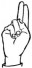 На ћирилици написано ИСИДОРА ЦУКАВАЦ састоји се из 14 слова [?]. Исписано ћириличном једноручном азбуком за глувонеме: